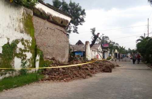 Bagian tembok di komplek Keraton Surakarta yang roboh