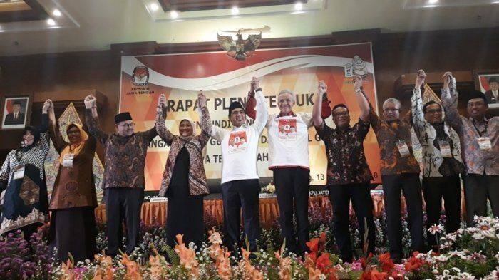 Sorak sorai para tim pendukung meriahkan rapat pleno terbuka yang dipimpin oleh Komisi Pemilihan Umum Jawa Tengah. Tribunjateng.com