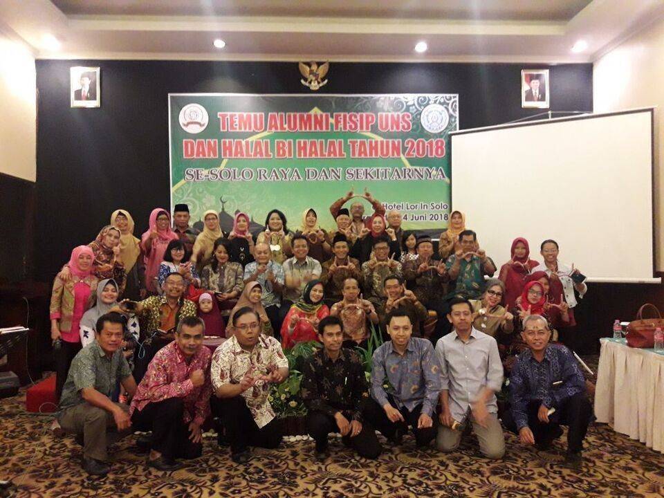SOLO-Para alumni Fakultas Ilmu Sosial dan Ilmu Politik (FISIP) Universitas Sebelas Maret (UNS) Surakarta menggelar halal bi halal sekaligus reuni tingkat fakultas di Grand Rukmi Ballroom Hotel Lorin, Solo, Sabtu (23/6/2018).