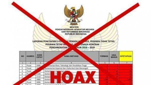 Foto tersebut juga dilabeli dengan tulisan ‘hoax’ dan disertai tanda silang wana merah yang melintang. Kementerian PANRB juga mengimbau kepada masyarakat untuk tidak mudah percaya dengan informasi yang tidak jelas sumbernya.