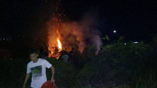 Api pun menyambar tumbuhan kering lain dan sempat meluas. Beruntung, warga cepat bertindak memadamkan kobaran si jago merah.