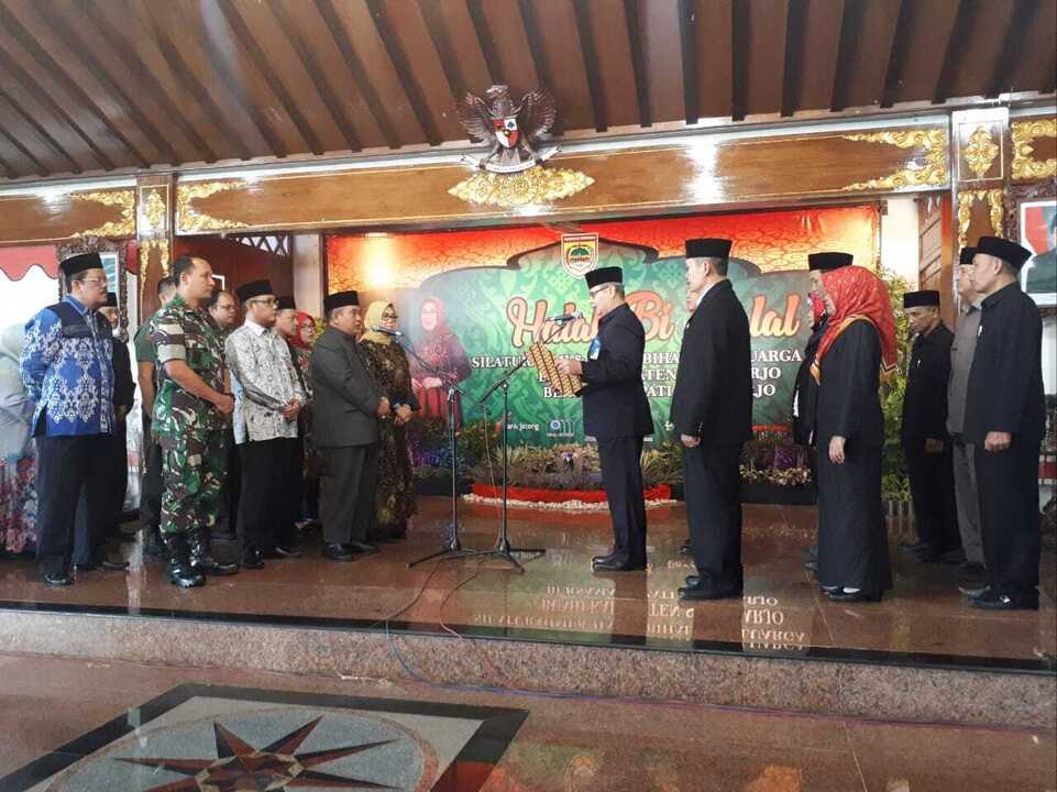 SUKOHARJO-Bupati Sukoharjo Wardoyo Wijaya bersama Wakil Bupati Purwadi, bersama jajarannya melaksanakan safari Halal Bi Halal Pemerintah Tingkat Kecamatan di 12 Kecamatan di wilayah Kabupaten Sukoharjo.