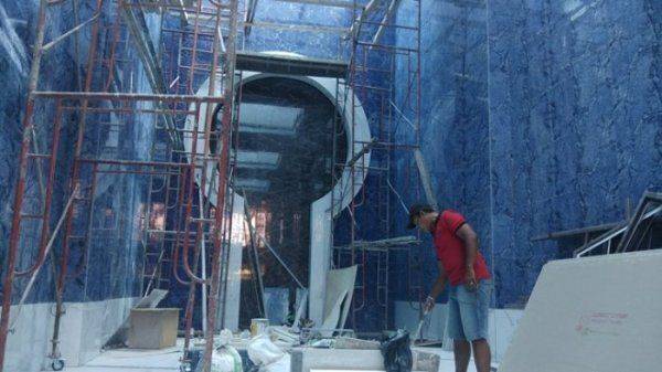 “Marmer yang dilapiskan ke tembok merupakan Marmer pilihan. Marmer ini bisa menyerap panas. Jadi terasanya adem,” terang Agung.