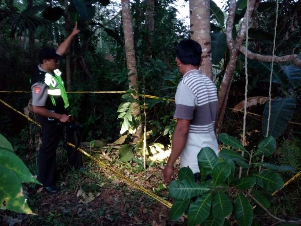 Dari hasil olah tempat kejadian perkara diduga korban terjatuh dari pohon mahoni setinggi sekitar 5,5 meter,saat korban memetik dedaunan untuk pakan ternak. Tidak ditemukan tanda bekas penganiayaan. Aris Arianto