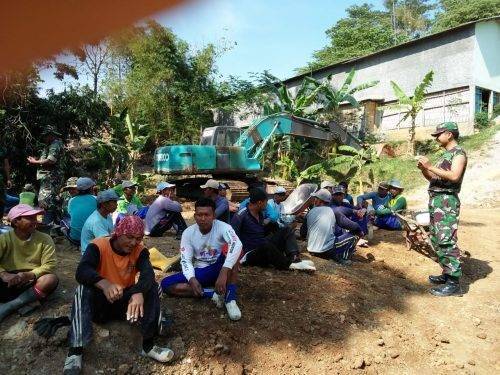 Memasuki waktu istirahat atau sekitar pukul 11.30 WIB, Satgas TMMD dan beberapa warga memilih istirahat atau melepas lelah sejenak di tempat yang teduh tidak jauh dari lokasi sasaran.