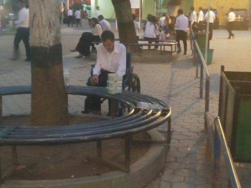 Tepat ketika adzan magrib berkumandang, pemuda lulusan sarjana bergelar MPDi itu tampak bergegas menggeserkan kursi rodanya ke arah yang agak sepi di dekat pohon di halaman barat GOR Diponegoro Sragen.