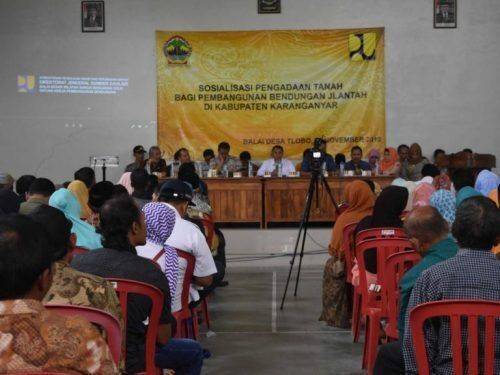 “Kami menjawab melalui program pada 2012 atau 2013, itu perencanaan awal. Lalu 2015 uji kelayakan atau lebih rinci untuk pelaksanaan. Dimulai dari kelayakan konstruksi dan detail. Butuh tanah 196 ha atau 459 bidang. Lokasi di Desa Tlobo dan Desa Karangsari Kecamatan Jatiyoso,” kata Charisal saat ditemui seusai sosialisasi di Balaidesa Tlobo, Jatiyoso, Selasa (13/11/2018).