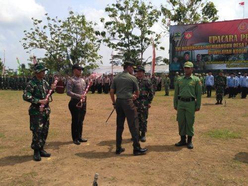 SRAGEN—TNI Manunggal Membangun Desa (TMMD) ke-103 Kodim 0726/Sragen secara resmi ditutup oleh Komandan Korem 074/ Warastratama Kolonel Inf Widi Prasetijono di desa Sukorejo Kecamatan Sambirejo Kabupaten Sragen, Selasa (13/11/2018).