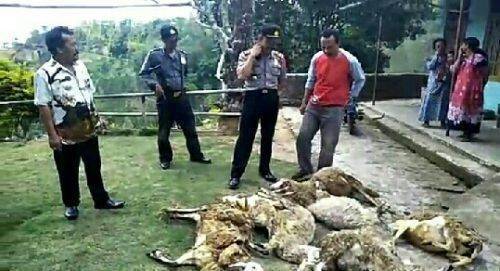 Tercatat sudah ada total 18 ekor kambing yang dimangsa. Kamis (22/11/2018) pagi ini tercatat ada 11 ekor kambing milik warga pagi ini ditemukan mati dengan bekas luka di lehernya.