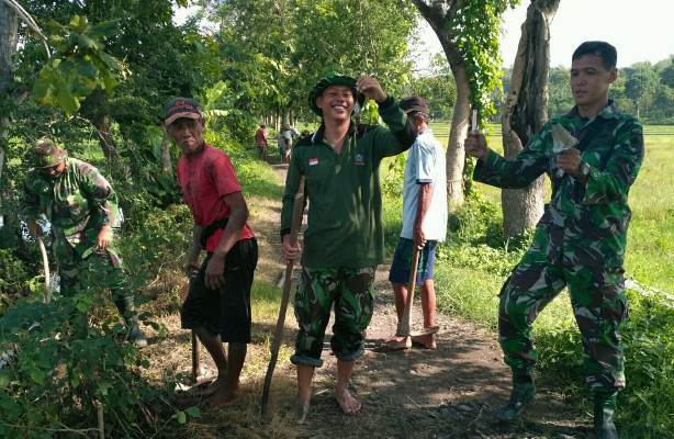 Personel Koramil 01 Kota bersama petani di dukuh Jiwan desa jimbung kecamatan Kalikotes, Klaten bersama-sama membasmi hama musuh petani tersebut, Selasa (15/1/2019).