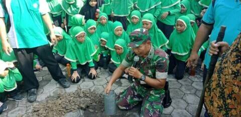 Seperti halnya yang dilakukan oleh Babinsa Koramil 01 Sukoharjo wilayah Desa Joho Pelda Wagimin dan Sertu Heri Supriono. Mereka melaksanakan sosialisasi biopori di hadapan siswa MIN 2 Sukoharjo.