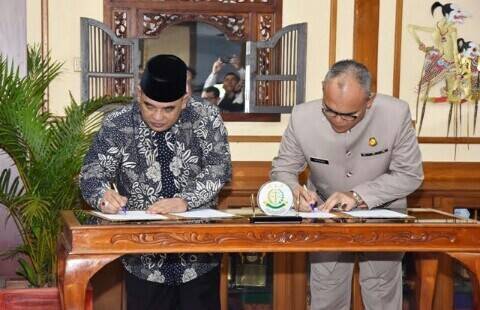 Kerjasama itu dituangkan dalam penandatanganan nota kesepakatan bersama (MoU) antara Bupati Sukoharjo Wardoyo Wijaya dan Kepala Kejaksaan Negeri (Kajari) Sukoharjo Tatang Agus Vallyanto, di lobby Kantor Bupati Sukoharjo, Selasa (22/1/2019).