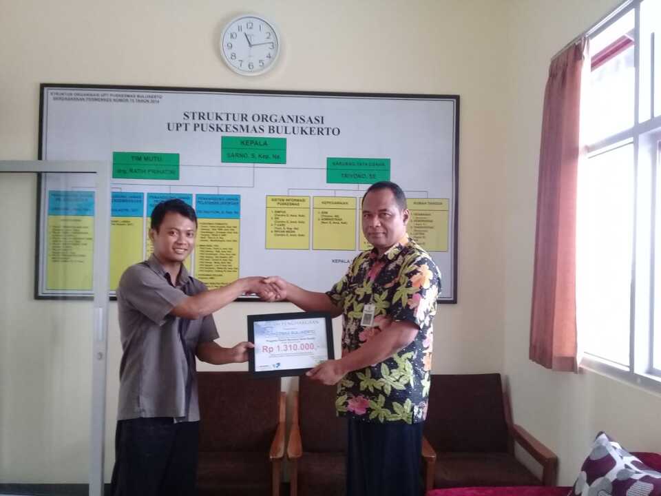 JOGLOSEMARNEWS.COM , SOLO – Puskesmas Bulukerto Wonogiri menyerahkan donasi bantuan untuk para korban tsunami Selat Sunda di Banten, Kamis (14/2.2019). Dana sebesar Rp 1.310.000,- diserahkan langsung oleh Kepala Pukesmas Bulukerto Wonogiri, Bapak Sarno kepada perwakilan SOLOPEDULI area Wonogiri, Kayan Anggadita. Penggalangan dana dilakukan selama satu pekan.