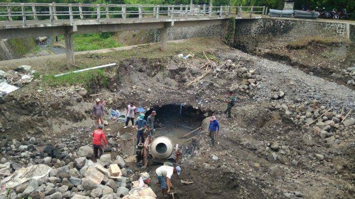 Saat ini, proses perbaikan terhadap lubang di Bendungan Samberembe masih terus dilakukan dengan melakukan pengecoran.