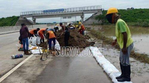 Ditemui di lokasi, GM Operasi dan Pemeliharaan Jasa Marga Ngawi Kertosono, Charles Lendra, mengatakan, pemasangan sandbag tersebut merupakan upaya sementara untuk mencegah air masuk ke badan jalan tol, pada saat curah hujan tinggi.