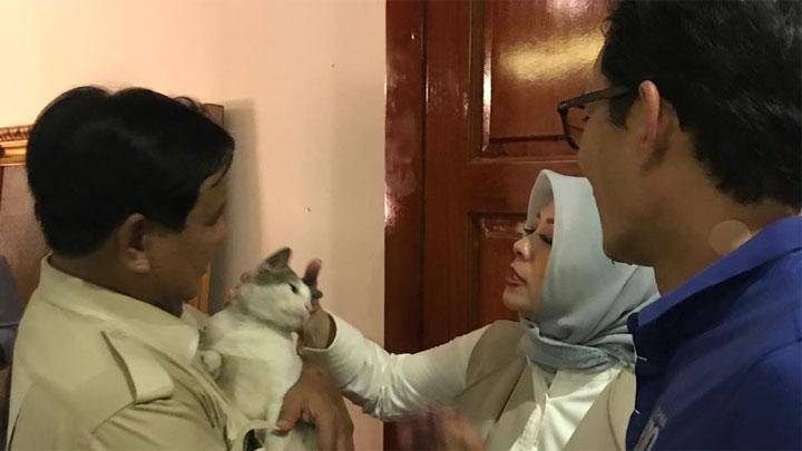 .JAKARTA, JOGLOSEMARNEWS.COM – Calon presiden 02 Prabowo Subiantonmenjenguk calon wakil presiden 02 Sandiaga Uno Rabu (17/4/2019). Sandiaga mengaku, Prabowo menjenguknya sambil menggendong Bobby, kucing milik Prabowo yang tinggal di Jalan Kertanegara 4, Kebayoran Baru, Jakarta Selatan.