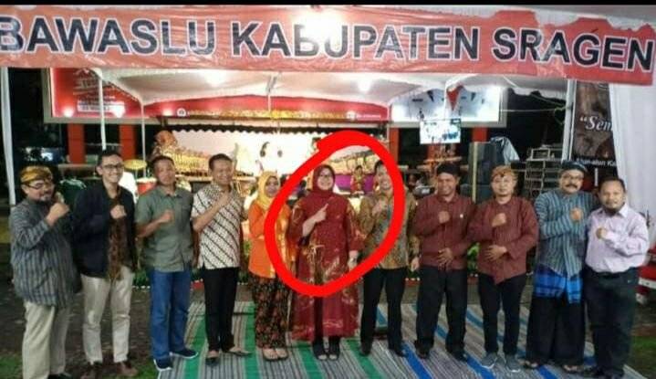 Saat melapor ke Bawaslu Senin (1/4/2019) lalu, tim BPN Prabowo-Sandi Sragen mengajukan bukti foto yang menampilkan pose Bupati Sragen saat mengacungkan satu jari di acara wayangan Bawaslu.