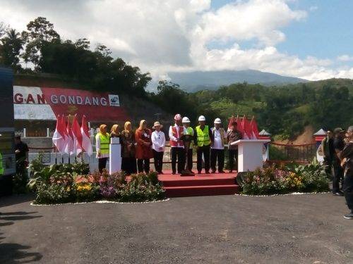 Jokowi meresmikan waduk Gondang ditandai dengan menekan tombol sirine dan penandatangan prasasti.