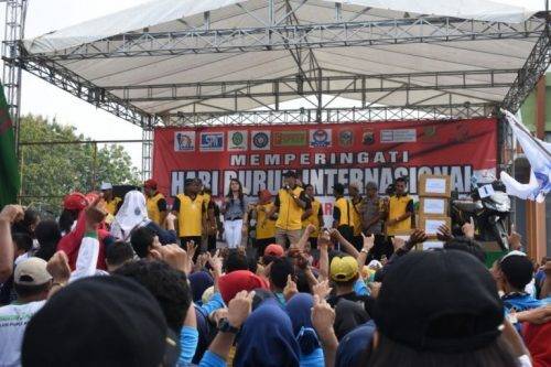 “Di hari buruh ini, para pekerja harus selalu berpikir positif karena energi positif akan menghasilkan hasil pekerjaan yang maksimal. Buruh harus juga harus gembira,” ujar bupati saat memberi sambutan.