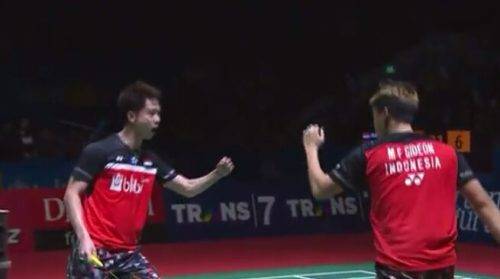 Kevin/Marcus memenangi semifinal dalam durasi singkat 29 menit dengan skor 21-9, 21-13.