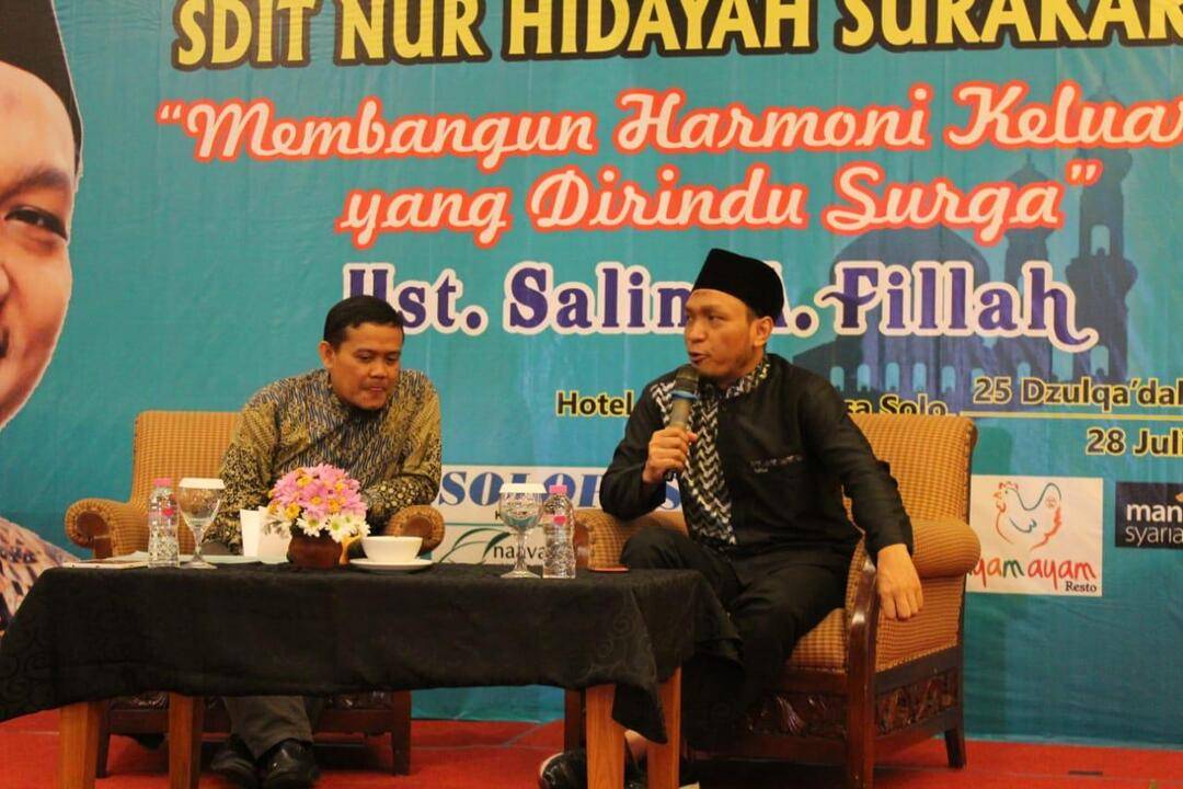 Dalam rangka Membangun Harmoni Keluarga yang Dirindu Surga SD Islam Terpadu Nur Hidayah Surakarta menggelar kegiatan Seminar Parenting Interaktif dengan pembicara Ust. Salim A Fillah, dari Yogyakarta, penulis buku bestseller Lapis-Lapis Keberkahan, Saksikan Aku Seorang Muslim, dll.