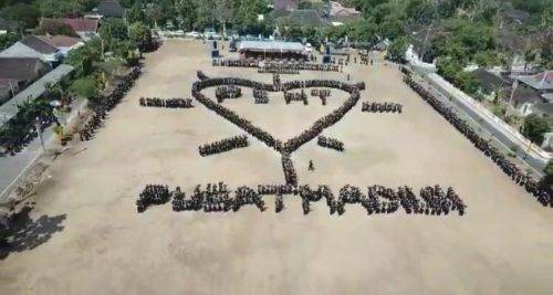 Dengan membentuk formasi itu, mereka secara serentak mengucapkan Dirgahayu HUT RI. Momen spektakuler itu lantas diabadikan dari udara melalui drone.