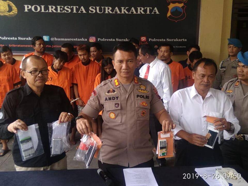“Dari 18 tersangka itu diketahui ada empat orang yang berstatus residivis dengan inisial S, AS, NAT dan IWA,” ujar Kapolresta Surakarta, AKBP Andy Rifai dalam jumpa pers di Polresta Surakarta, Senin (26/8/2019).