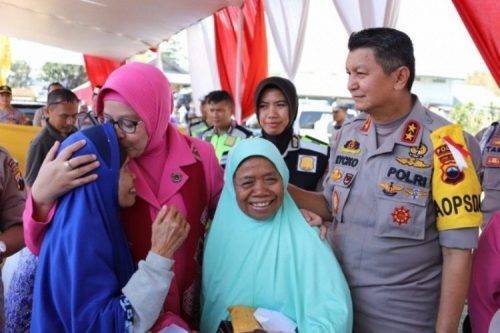Momen haru pun tercipta kala Ketua PD Bhayangkari sekaligus Ibu Kapolda, Ny Ningrum Amelza Dahniel mencium kening nenek-nenek yang ikut antri baksos. JSnews