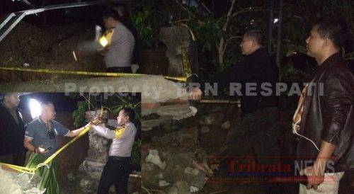 Kapolsek Gembong bersama anggota cek lokasi dan memasang Police Line serta Olah TKP yang di saksikan oleh Perangkat Desa Sitiluhur, Kecamatan Gembong.