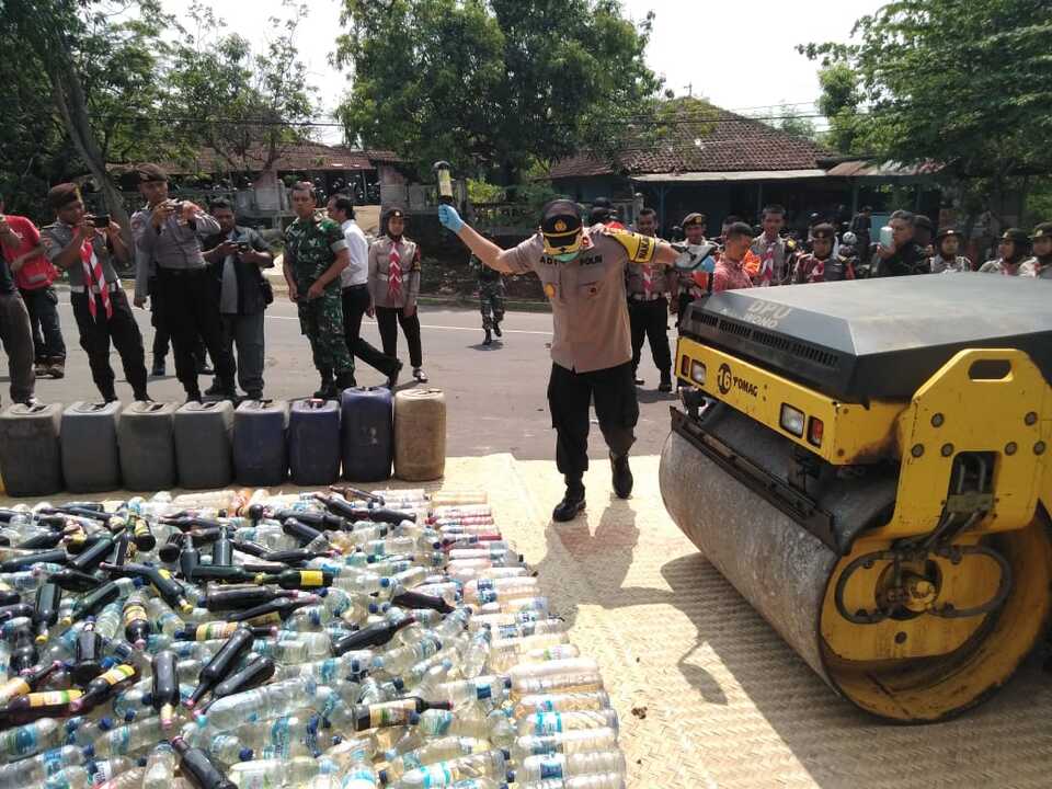 Ada lebih 1000 liter miras aneka merk dimusnahkan di depan Mapolres Wonogiri di Jalan Raya Wonogiri – Wuryantoro Kilometer 2 Wonogiri.