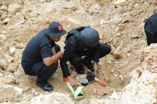 REMBANG, JOGLOSEMARNEWS.COM – Tim Gegana Brimob Polda Jateng melakukan memusnahkan empat bahan peledak. Kegiatan ini digelar di area tambang kapur PT Semen Indonesia setempat.