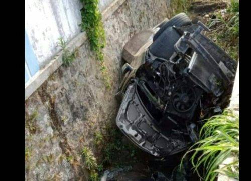 Kecelakaan menimpa mobil Picanto Nopol H 8655 AZ. Mobil hilang kendali dan terjun bebas ke parit di tepi jalan.