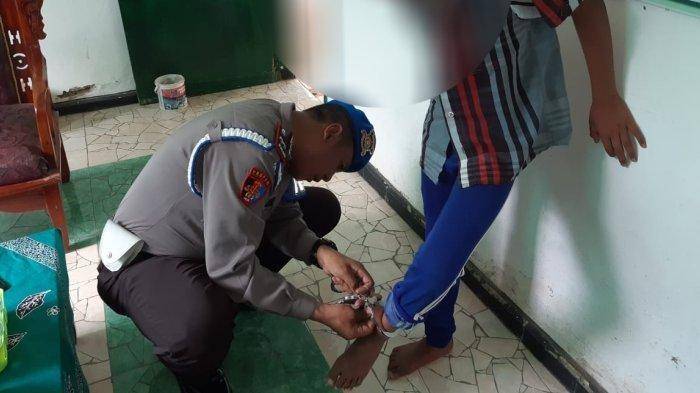 Polisi segera mendatangi MI di kantor tertara tersebut untuk melepaskan borgol yang mengikat pergelangan kakinya.
