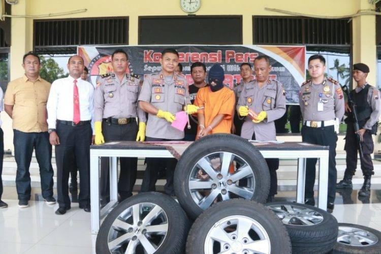 Sementara itu tersangka ML yang sehari-harinya bekerja sebagai sopir travel mengaku butuh satu jam untuk melepas roda ban untuk dua mobil.