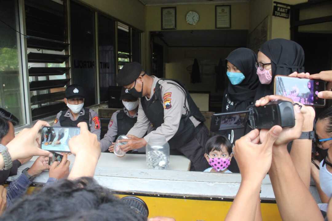 Dengan membawa satu plastik uang recehan dan lembaran, dua warga Aspol Manahan itu mendatangi Mapolresta Surakarta dan diterima petugas. Kepada awak media, Tasya menjelaskan uang tersebut hasil tabungan sisa uang jajan selama setahun terakhir.