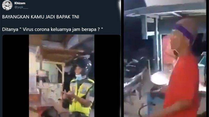 Rekaman amatir dari ponsel tersebut memperlihatkan seorang anggota TNI yang memberikan sosialisasi bahaya virus corona kepada penjual nasi goreng dan nasyarakat sekitar di sebuah warung.