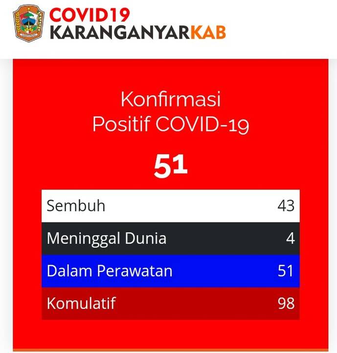 Lonjakan tajam itu terungkap dari data resmi yang dilansir Pemkab Karanganyar di laman covid19.karanganyarkab.go.id.
