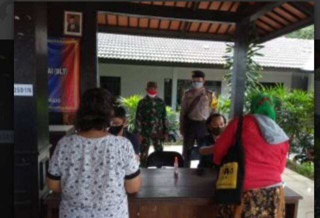 SUKOHARJO, JOGLOSEMARNEWS.COM – Bhabinkamtibmas Desa Kwarasan Bripka Nanda Chandra W bersama Babinsa Serka Sriyono melaksanakan pengamanan kegiatan penyaluran Bantuan Sosial Tunai (BST) tahap 3 dari Kemensos RI kepada keluarga terdampak virus Corona (COVID-19) di Pendopo Balai Desa Kwarasan, Kecamatan Grogol Sukoharjo.