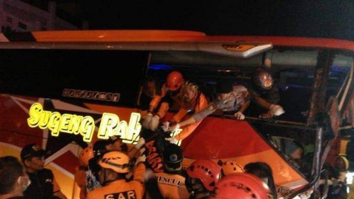 Polisi bersama tim dari Basarnas beserta warga setempat langsung melakukan evakuasi sopir dan penumpang yang masih ada di dalam bus.