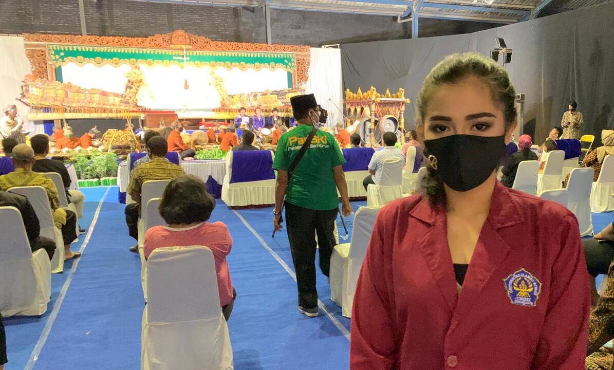 Mahasiswa Fisip Unisri, Bella Bonita yang sedang melaksanakan KKN dari grup 35 berkesempatan membantu pelaksanaan simulasi pertunjukkan pagelaran seni tersebut.