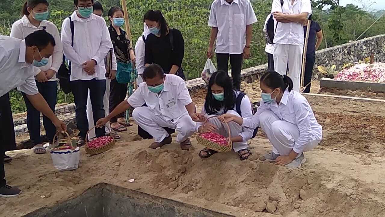 Bahkan keluarga dan kerabat terlihat terus meneteskan air mata saat jenazah diturunkan dari ambulan menuju liang lahat. Sementara warga sekitar makam juga turut menyaksikan prosesi pemakaman tersebut.
