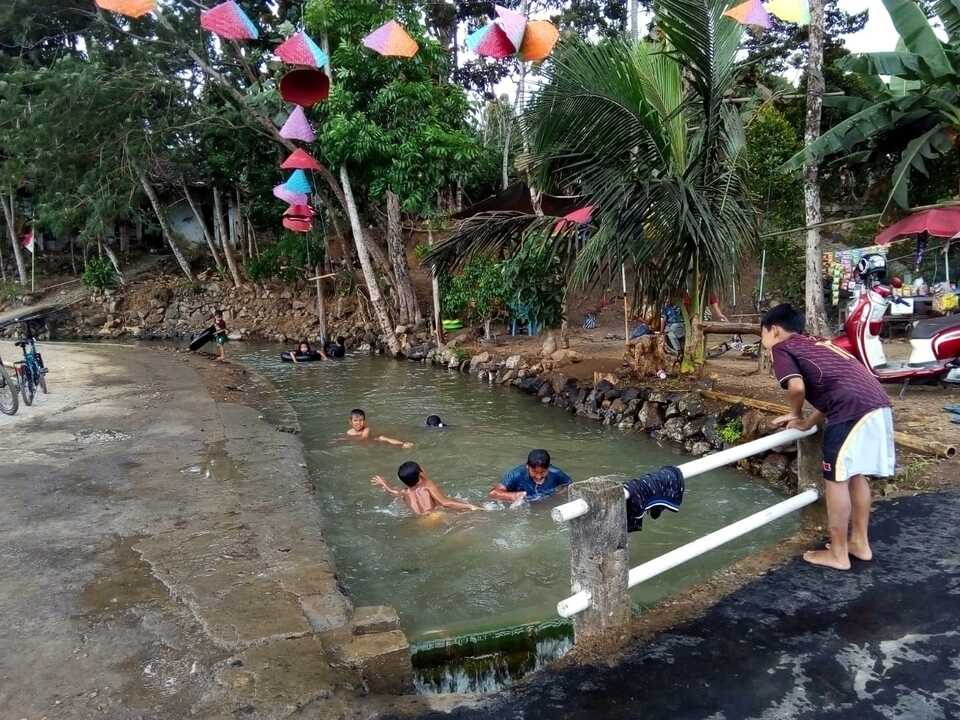 Selanjutnya warga membendung aliran tersebut sehingga bisa dipakai untuk renang para pengunjung.