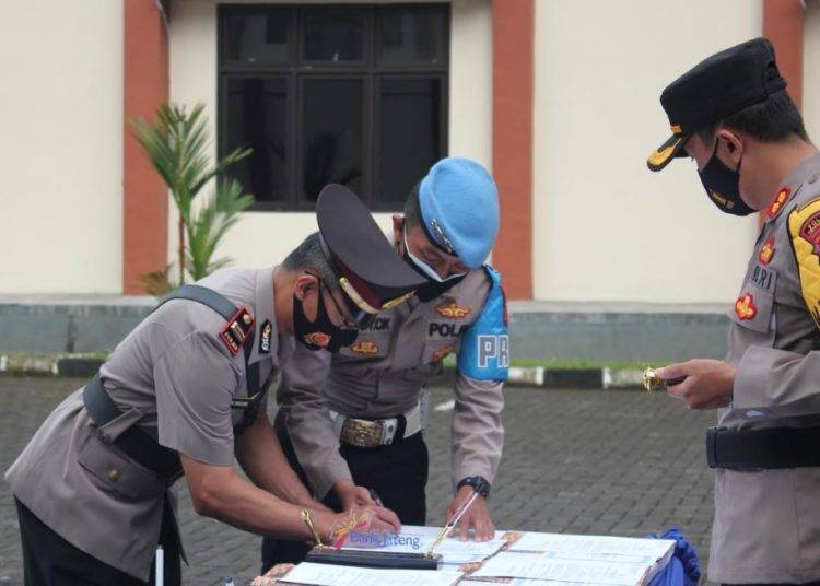 TEMANGGUNG, JOGLOSEMARNEWS.COM -Kepala Kepolisian Resor Temanggung AKBP Benny Setyowadi memimpin serah terima jabatan Kasat Reskrim, Kasat Lantas, Kapolsek Kedu, Kapolsek Bulu, Kapolsek Kaloran, Kapolsek Kandangan, Kapolsek Kota Temanggung, Kapolsek Tembarak, Kapolsek Ngadirejo dan Kapolsek Pringsurat.