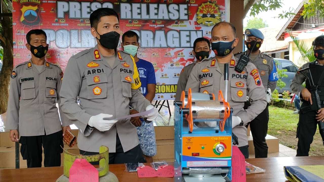 “Kemarin tersangka bisa kita amankan dengan hasil kerja keras dari Polsek Tanon. Barang bukti yang diamankan di antaranya tabung gas dan cup sealer atau pengepak gelas plastik,” tuturnya.