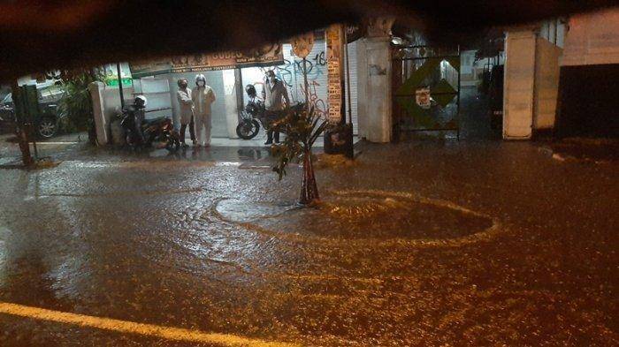 Akibatnya air meluap dari bawah dan membanjiri jalanan, pada Selasa (9/2/2021) malam.