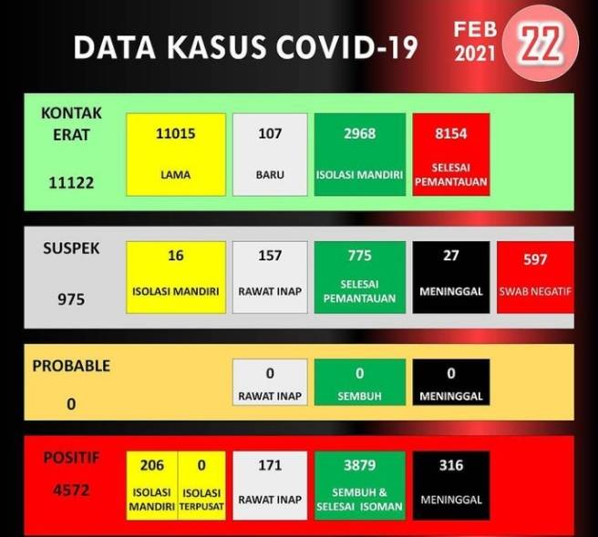 Terkini di Sukoharjo berdasarkan informasi dari Dinas Kesehatan Sukoharjo, Selasa (23/2/2021), ada kenaikan 22 kasus baru. Dengan demikian untuk sementara total kasus terkonfirmasi positif COVID-19 adalah 4.572.