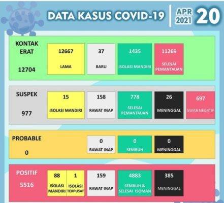Adanya penambahan itu menjadikan total kasus membengkak hingga melampaui angka 5.500. Tepatnya adalah 5.516 kasus.