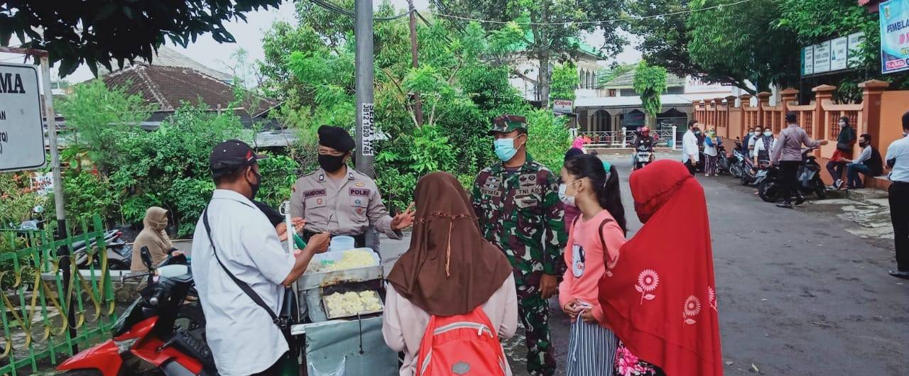 Petugas gabungan memberikan arahan kepada penjual makanan di sekitar sekolah di Wonogiri. Dok. Kodim 0728