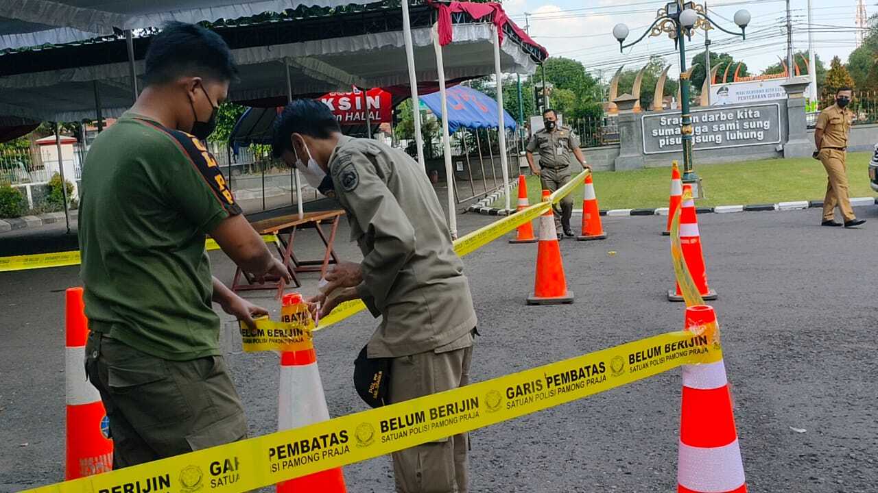 Selain pemasangan garis pembatas, setiap hari Satpol PP juga menyiagakan lima personel di lokasi vaksinasi.