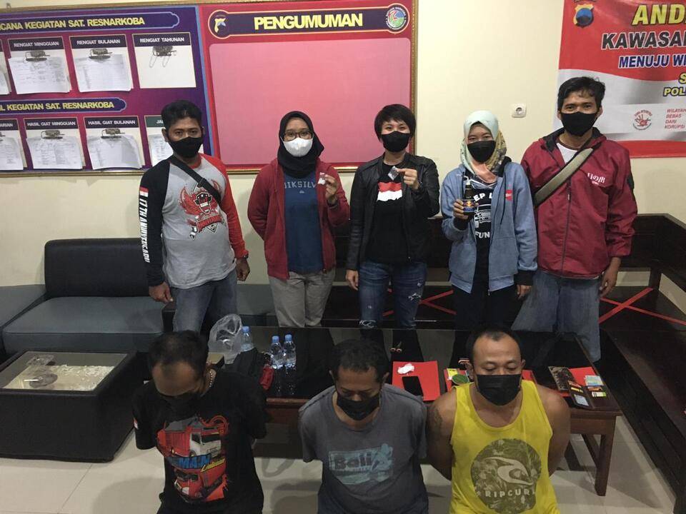 Setelah digrebeg ketiganya dibawa ke Mapolres Karanganyar bersama barang bukti sabu-sabu dan kelengkapan lainnya termasuk handphone dan bong.